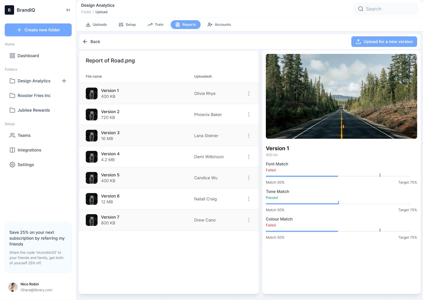 BrandReview keeps a complete history across files and campaigns, creating a clear report layer for review, approval, and accountability.