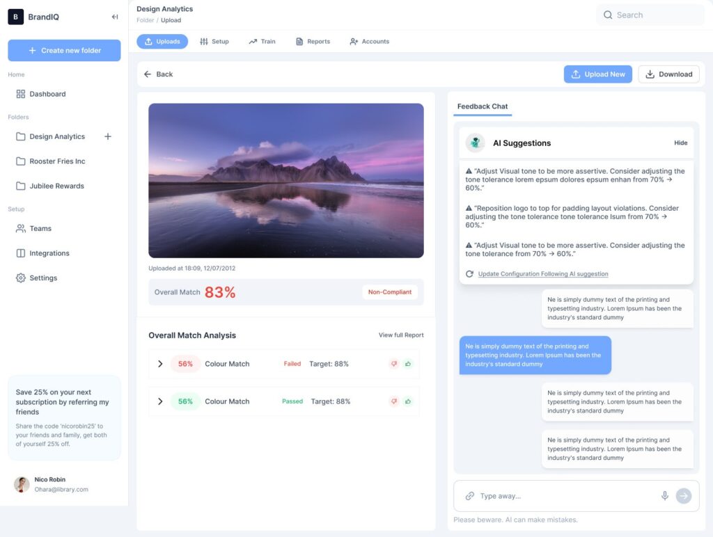 It removes the need for manual reviews by comparing each asset against the correct brand guidelines and generating clear, actionable reports for fast corrections.